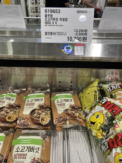 간단하게 한끼를 위해 냉동실에 하나씩 쟁여두잖아요 코스트코 쇼핑을 갈때마다 할인하는지 살펴보고있어요 코스트코에서 할인을 하면 당연히 구매해야하는거죠 풀무원 소고기버섯비빔밥은