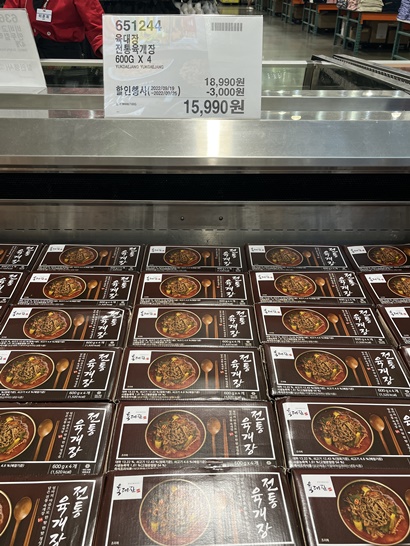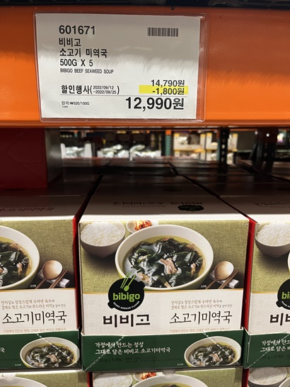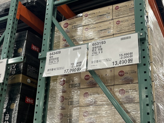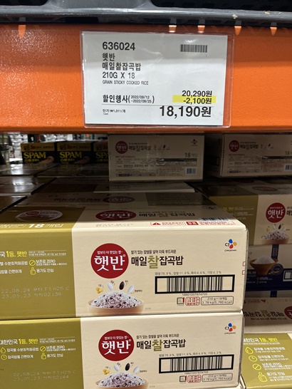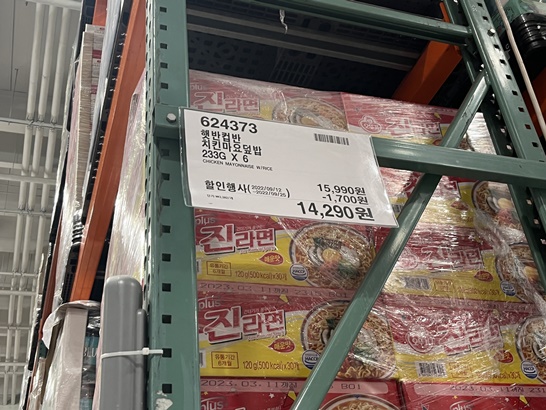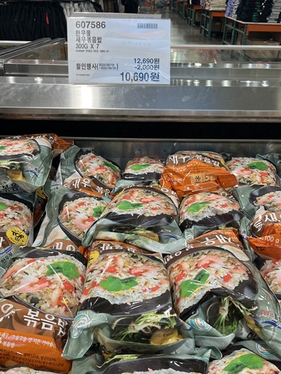 신랑은 새우볶음밥을 좋아해요~ 마침 코스트코에서 할인을 하더라구요 살까말까 고민하고 주말에 신랑이랑 코스트코에 가서 먹을건지 물어봤어요 신랑이 사달라고 하더라구요 7인분에 9990원이
