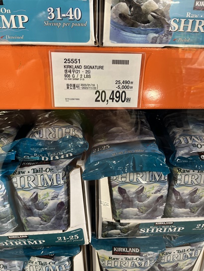 저번주 코스트코에서 새우가 할인을 하더라구요 구매를 할까말까 고민을 해봤어요 커클랜드 제품은 믿을만해서 한번 사와봤어요 21-25마리라고 되어있어서 전체 새우 숫자라 생각했는데요 다시