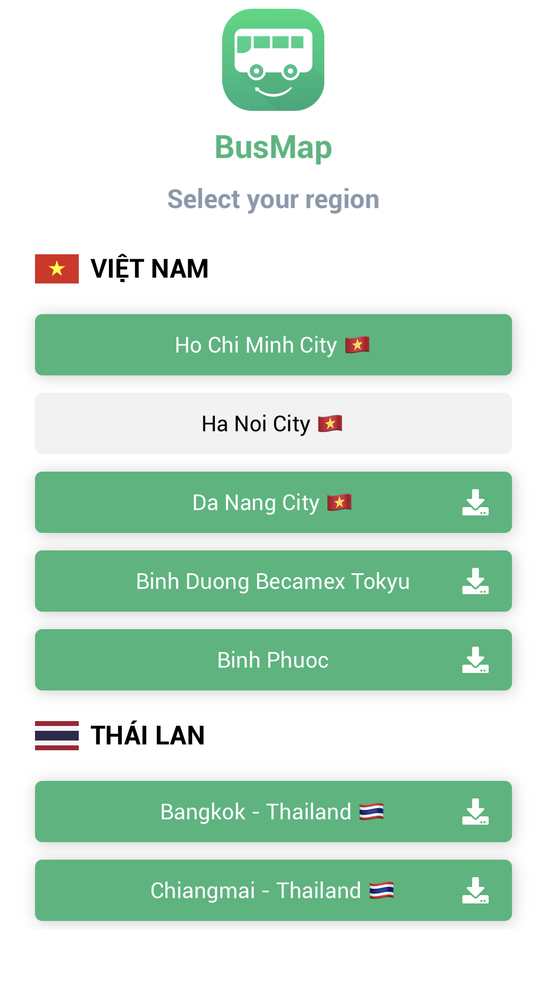 BusMap is a support application for bus users that has been applied in 4 provinces/cities in Vietnam (Ho Chi Minh, Hanoi, Da Nang, Binh Duong) and 2 major cities in Thailand (Bangkok, Chiangmai). ======== Main features: - Lookup detailed bus route infor